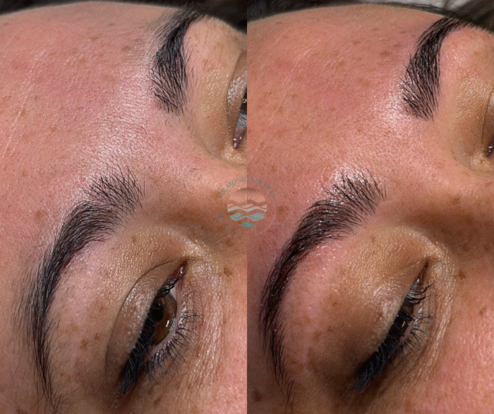 Brows can truly shape the face, so you want to make sure it’s always done to your taste! With brow lamination, it’s a procedure that sculpts the brow’s appearance using a chemical process to temporarily reshape and set the brow hairs into a desired direction. This helps create a lifted and fuller appearance, and perfect for those who have full and pesky brow hairs that go in different directions. This is a great non-invasive alternative to microblading.